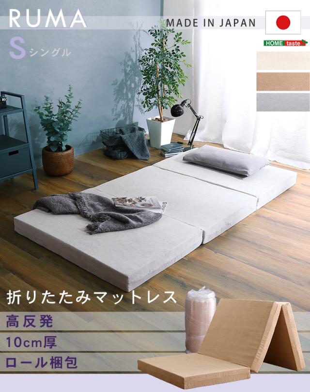 【日本製/圧縮ロール梱包】折りたたみマットレス シングル マットレス 97x195 厚さ10cm 高反発マットレス 三つ折り 敷布団 硬め ウレタンマットレス 体圧分散 コンパクト シンプル おしゃれ 寝具 RUMA(ルーマ) 3色対応