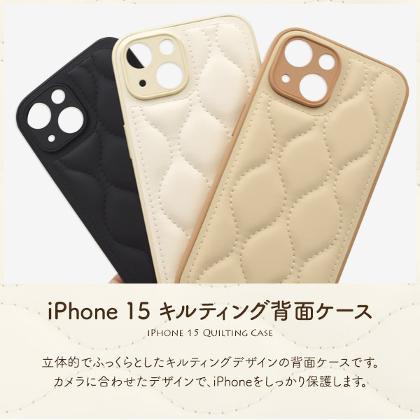 スマホケース iPhone15 キルティング背面カバー アイフォン15 保護 カバー 無地 合皮 レザーケース ソフトケース 柔らかい シンプル アイホン ハンドメイド DIY スマホ ケース スマホカバー アイフォン オリジナル iPhone 15 アイフォン15 ベージュ 白 黒