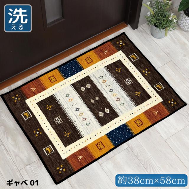 玄関マット 室内 おしゃれ 洗える 約38×58cm キッチンマット アクセントマット イラスト マット 敷物 転写プリント エスニック TEN016