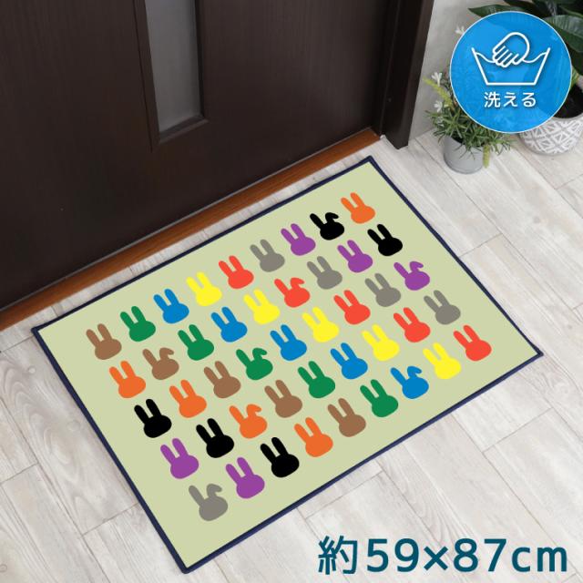玄関マット 室内 おしゃれ 洗える どうぶつ キッチンマット アクセントマット イラスト マット 敷物 転写プリント アニマル うさぎ ウサギ