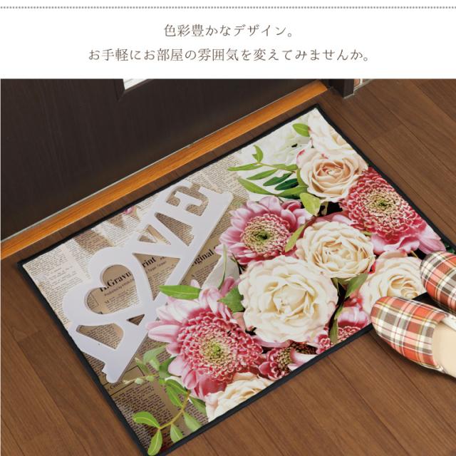 裏面不織布加工で床面を傷付けません。オシャレなプリントマットです。