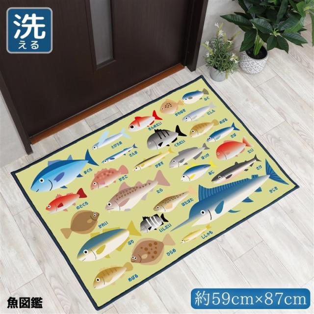玄関マット 室内 おしゃれ 洗える さかな キッチンマット アクセントマット イラスト マット 敷物 転写プリント 魚図鑑