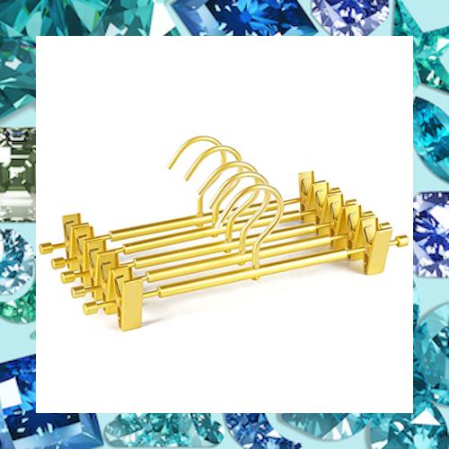 Amber Home 超軽いゴールドズボンハンガー 10本組 スカートハンガー ボトムス パンツ スラックス タオル用 金属 メタル 耐用性 調節可能