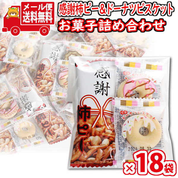 (メール便で全国送料無料)【18袋】お菓子 詰め合わせ プチ袋ギフト ばらまきに。感謝柿ピーとドーナツビスケット 袋詰め おかしのマーチ (omtmb9215)【送料無料 詰め合わせ おやつ 小袋 個包装 小袋 お試し】