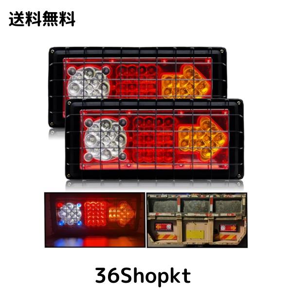 トラック テールランプ 24v led ブレーキ スモール トラック ボート 牽引トレーラー等に LEDテールライト 汎用 丸+矢印+鉄メッシュカバー 左右2個セット