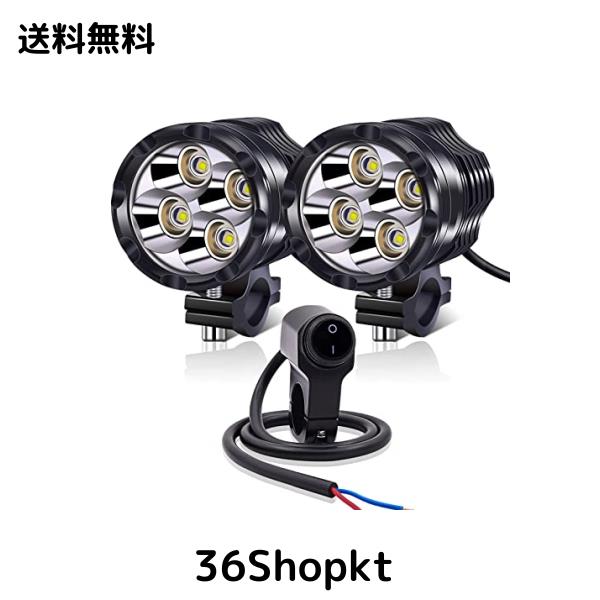 Aoling バイク フォグランプ、防水スイッチ付き、バイク ヘッドライト 補助灯、オートバイ フォグランプ LED、バイク フォグライト、バイ