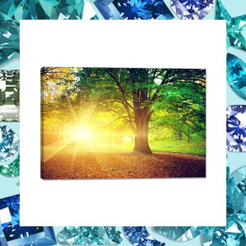 太陽 絵画 木の絵 自然風景 アートパネル 日光 風景画 ポスター 壁掛 額付き 風水 開運 装飾画 木枠付きの完成品 (30x40cm)