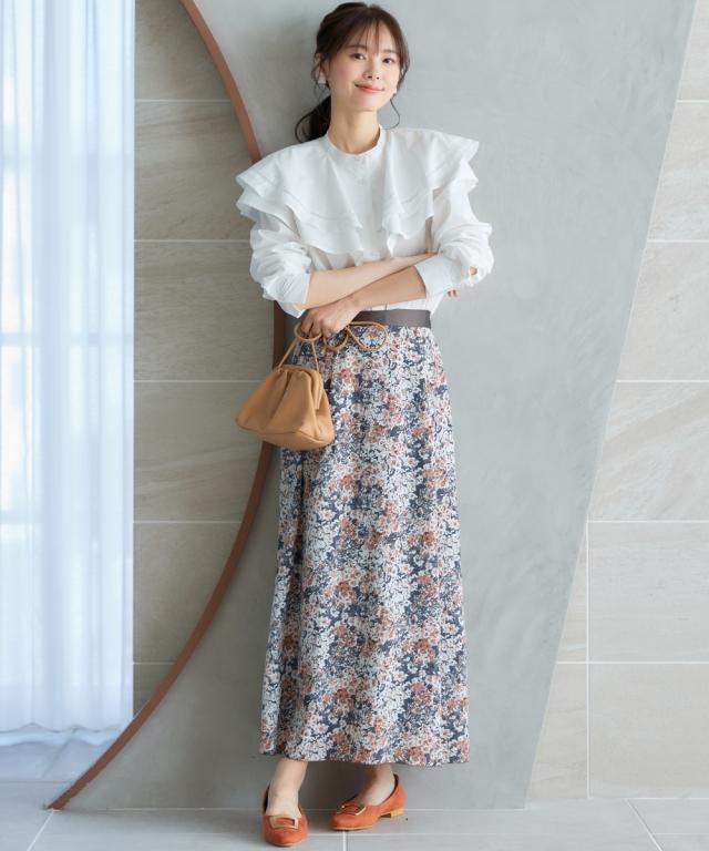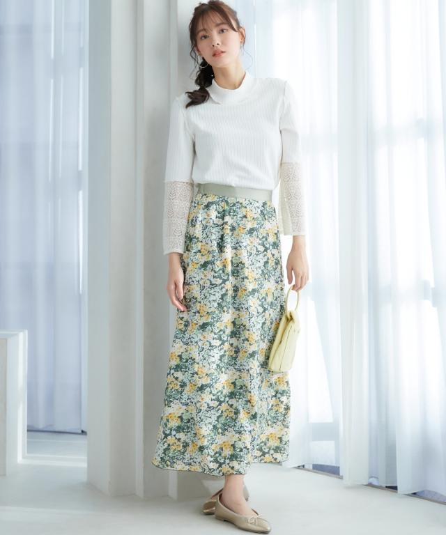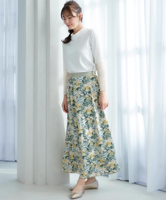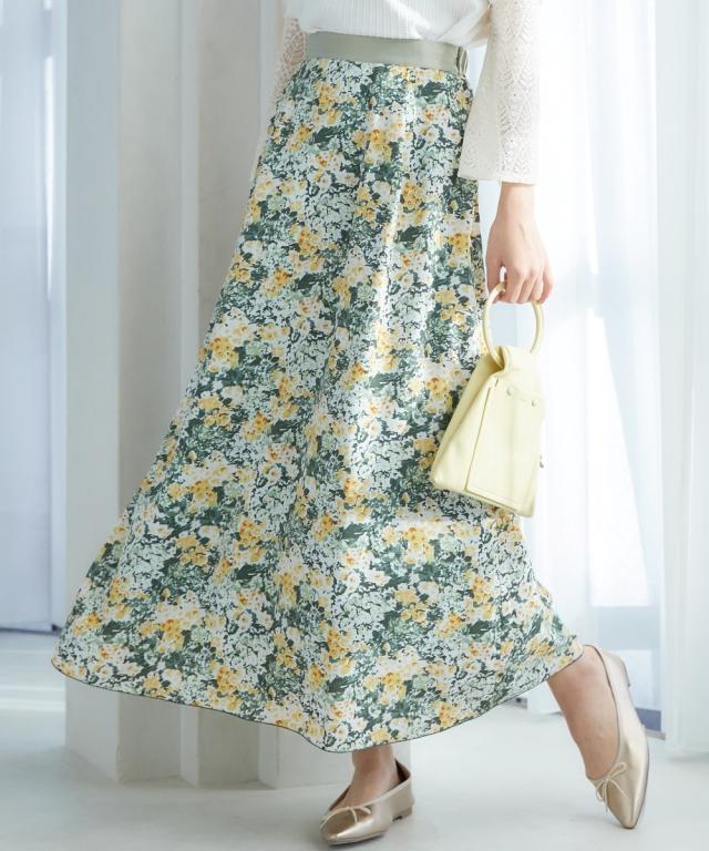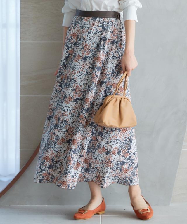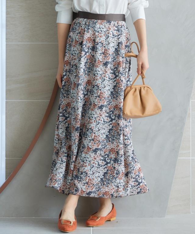 春を感じるフラワープリントスカート