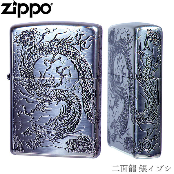 ZIPPO 二面龍 銀イブシ 二面連続加工 龍 霊獣 水龍 エッチング シルバー ジッポー ライター ジッポ Zippo オイルライター zippo ライター 正規品