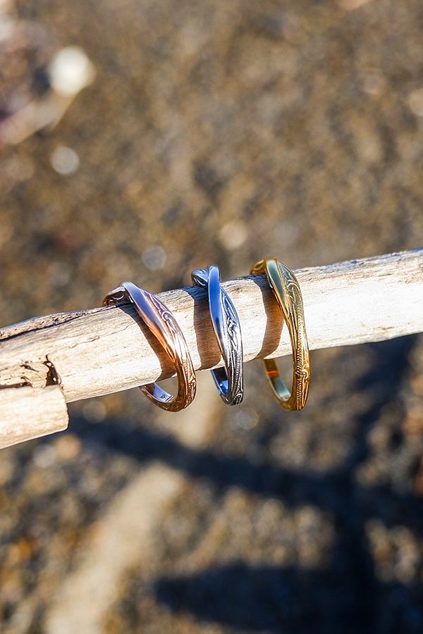 ハワイアンジュエリー リング 指輪 サージカルステンレス クロス 細身 細め つけっぱなしOK レディース スチールシルバー ゴールド 重ね付け スクロール 波 sale