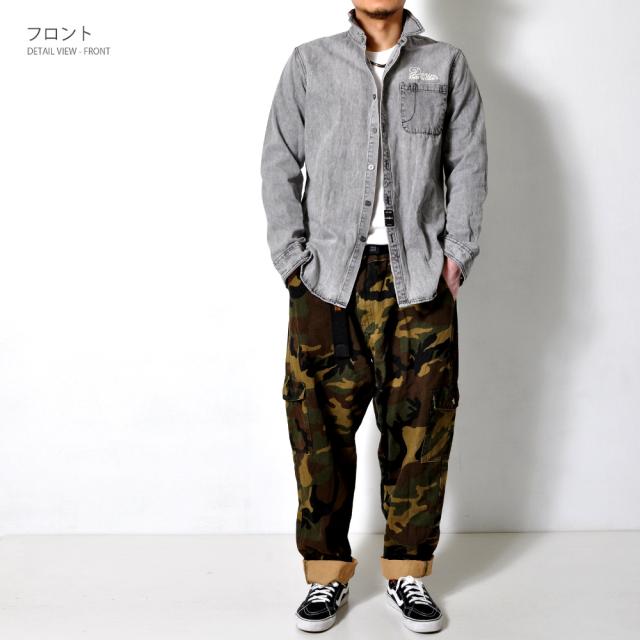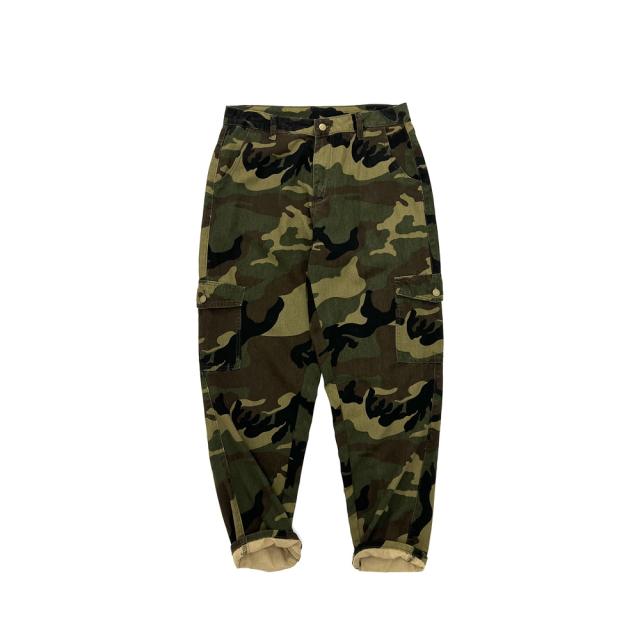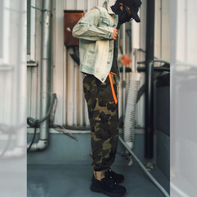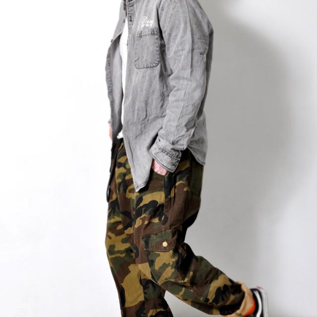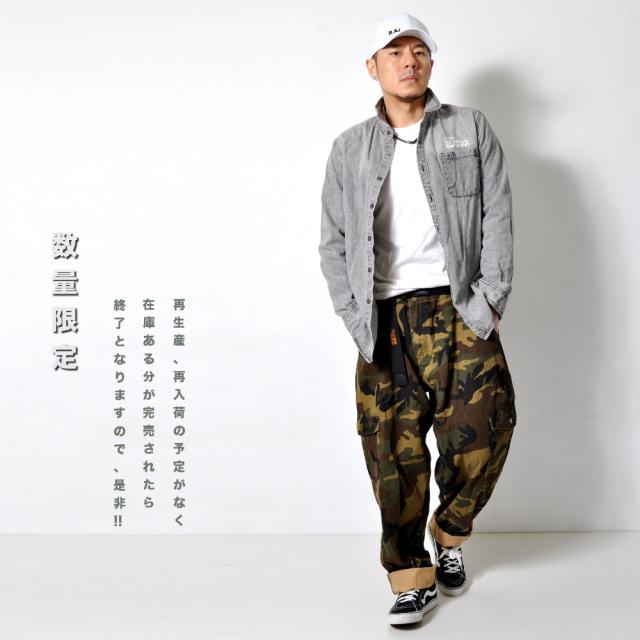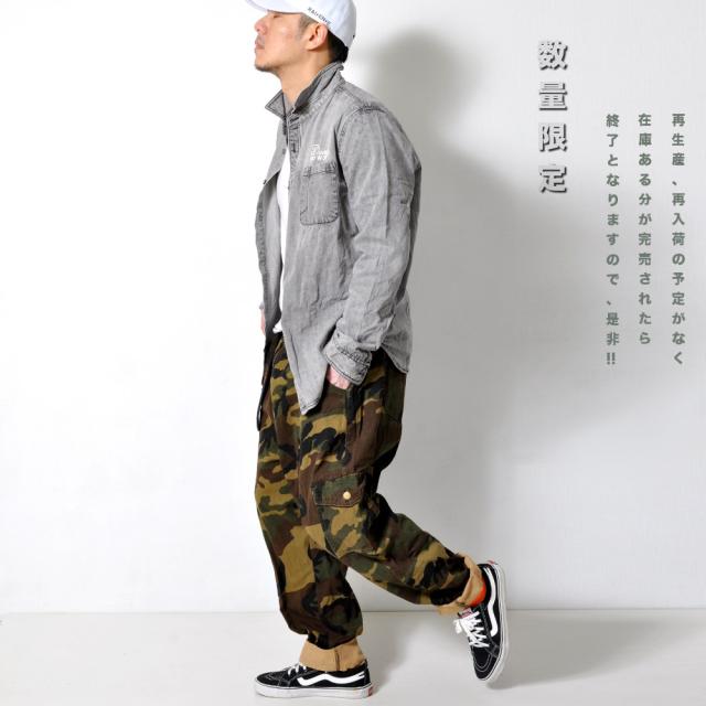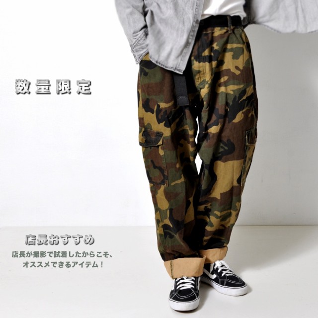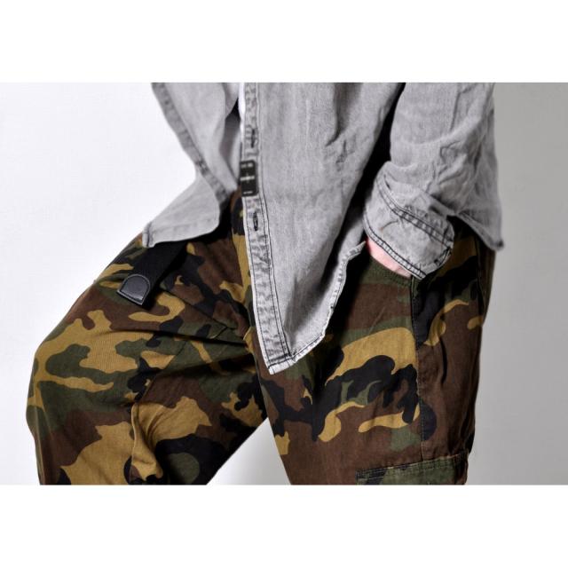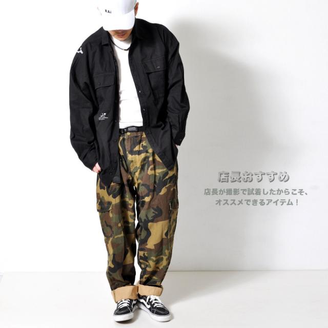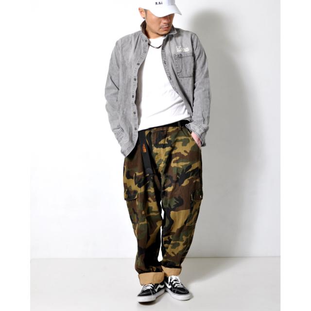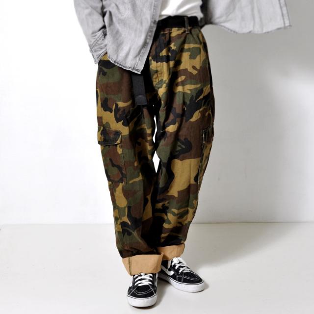 定番のウッドランドカモとルーズシルエットでミリタリーな男らしさが漂うカーゴパンツ