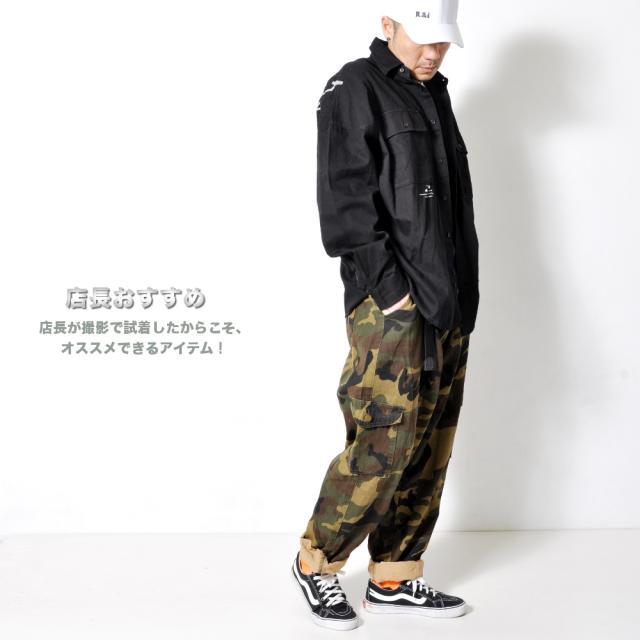 tsa 数量限定 迷彩柄 ワイド カーゴパンツ メンズ カモフラ ミリタリー ワークパンツ 軍パン ダボパン ボトムス#Pant660 M便 BL