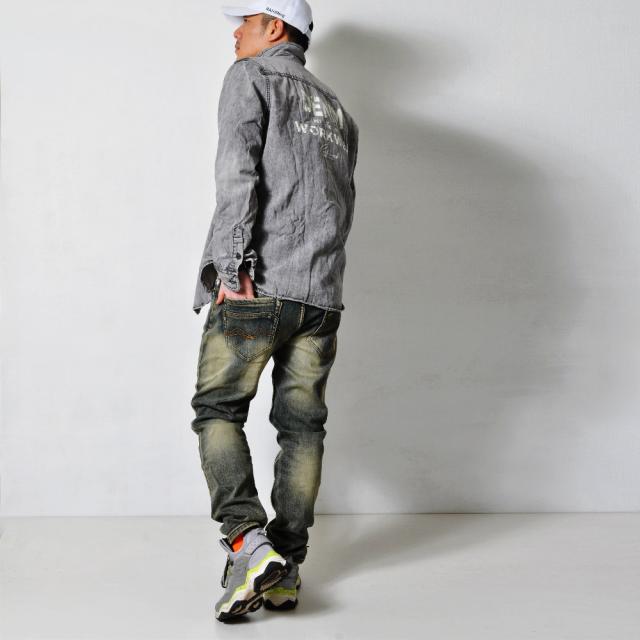数量限定 ビンテージ デニムシャツ メンズ ワークシャツ Gジャン ジージャン アメカジ 長袖 トップス#T648 M便 BL