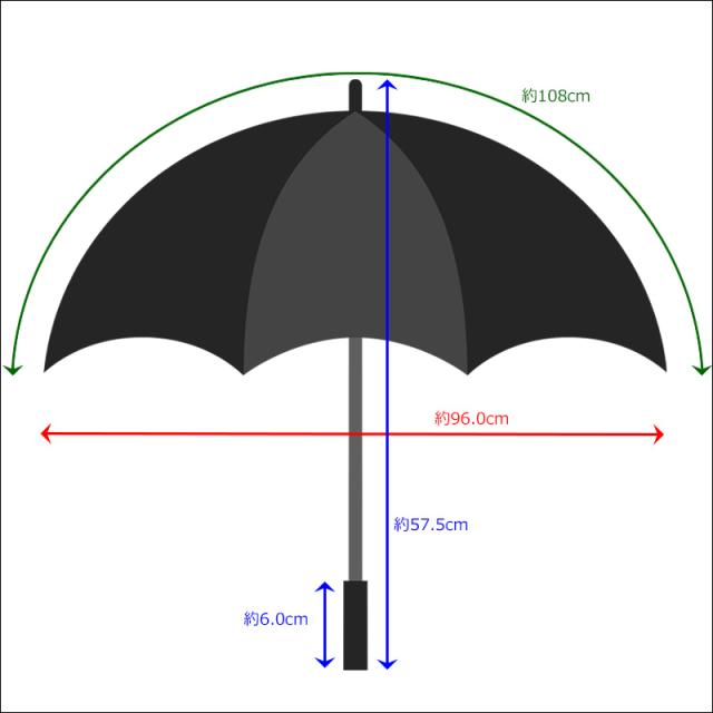全長:約108cm、直径:96cm、親骨の長さ:約57.5cm