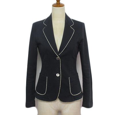 【中古】アマカ AMACA ジャケット テーラード パイピング コットン 38 紺 ネイビー レディース
