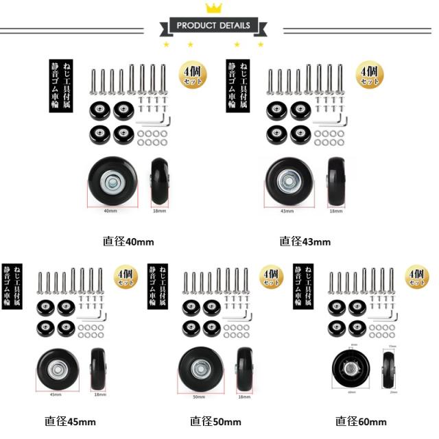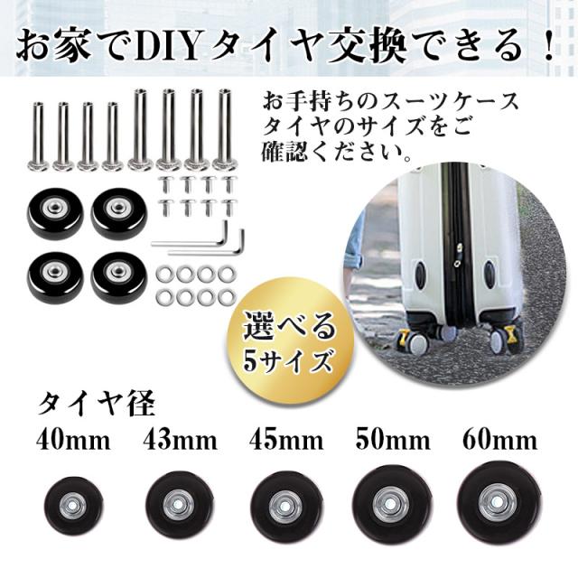 スーツケース タイヤ 交換 4個セット キャリーケース 交換キット 車輪修理 スーツケースタイヤ キャスター 40〜60mm 旅行 海外旅行 修学旅行