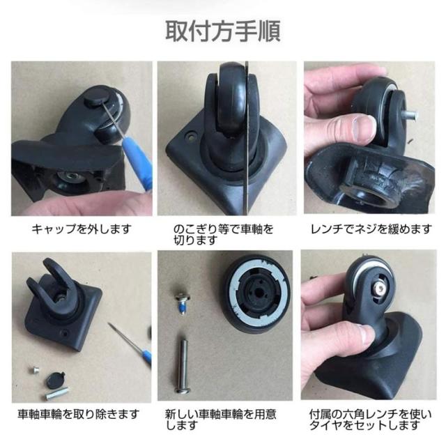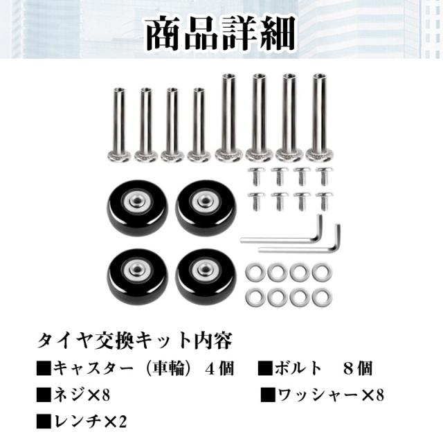 スーツケースタイヤ交換 4個セット キャリーケース 交換キット 車輪 修理 車輪補修 交換 スーツケース 車輪 DIY 取替え セルフ リペア スペア 簡単 カート 台車 キャスター取替え