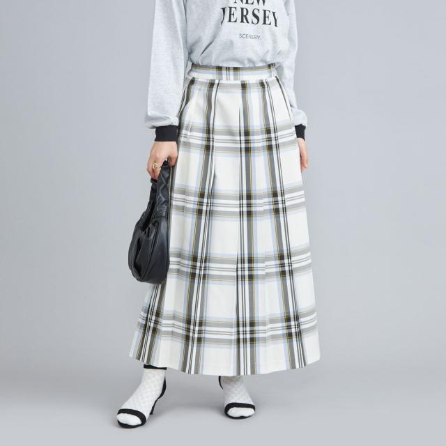 トラディショナルなチェック柄をあしらったロングスカート。