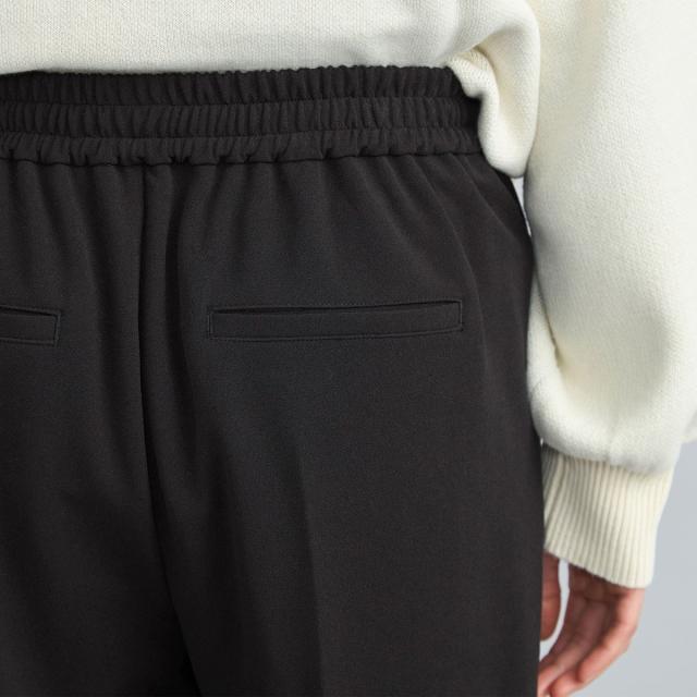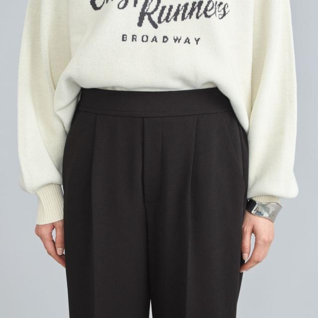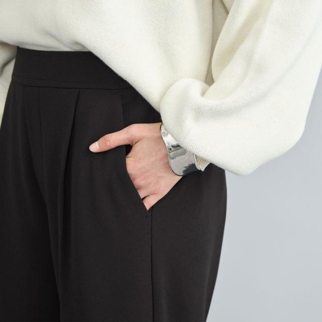 タックを施して腰回りにゆとりを持たせ、フィットしすぎず安心感のある穿き心地が魅力です。