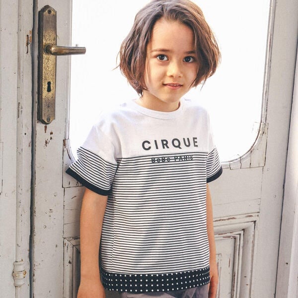 ベベ(BeBe)/【お揃い】ボーダー切り替えワイドTシャツ(90~150cm)