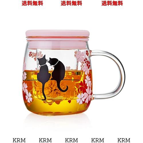 ポカロティー 耐熱ガラス茶こし付きマグカップ 透明 紅茶 温度で色が変わる桜猫カップ 和桜 春の日 桜満開 不思議な猫 幸せ 食洗機対応