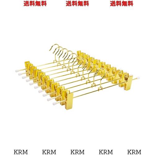 Amber Home ゴールドズボンハンガー 12本組 スカートハンガー スチールハンガー ボトムス パンツ スラックス タオル用 金属 メタル 耐用