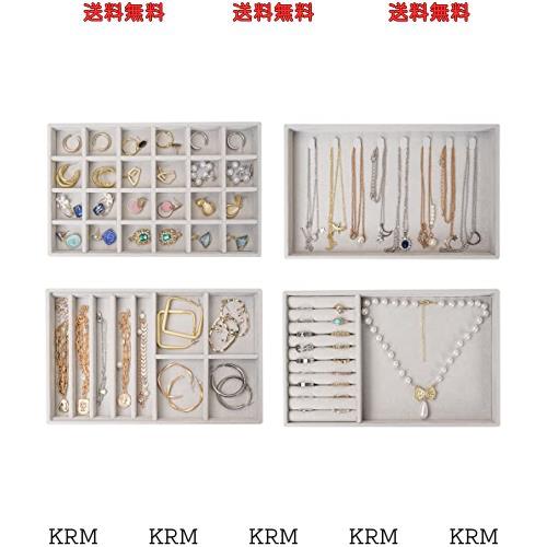 ◆商品名:ProCase ジュエリートレイ 4個 ジュエリー収納 積み重ね可能 アクセサリケース ドレッサー引き出し用 ディスプレイ 仕切り付き グレー