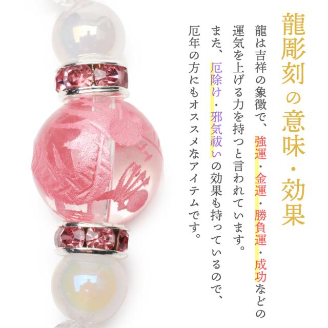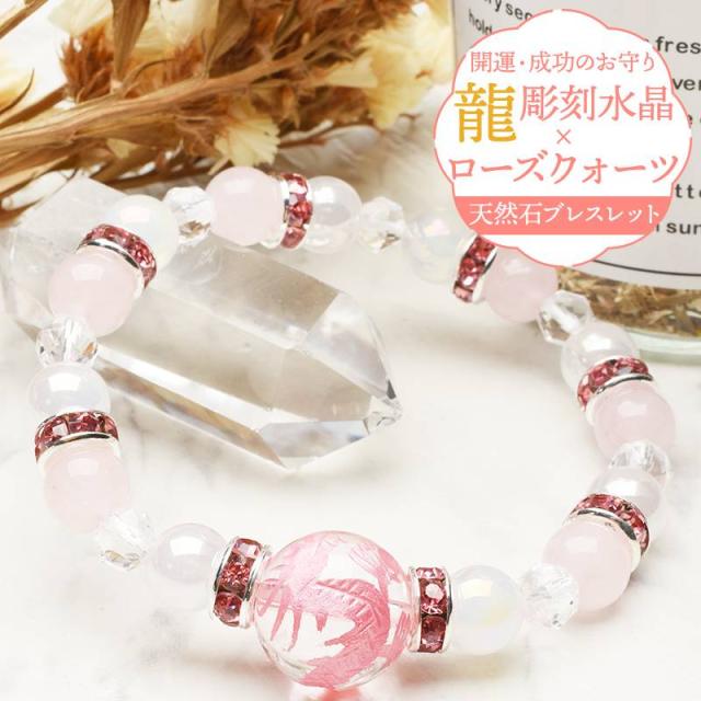 龍神彫刻 ピンク彫り ローズクォーツ 五爪皇帝龍 本水晶 龍彫り カルセドニー ブレスレット 浄化 運気アップ 勝負運 厄除け 恋愛運 お守り プレゼント パワーストーン 天然石 辰年 _A1266