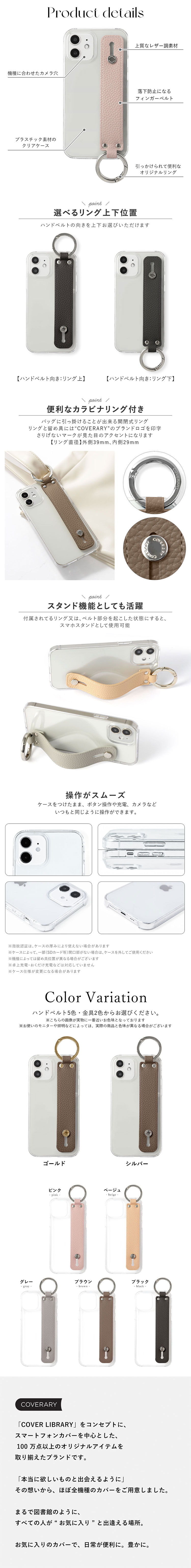 5色から選べるハンドベルト付きクリアハードケース