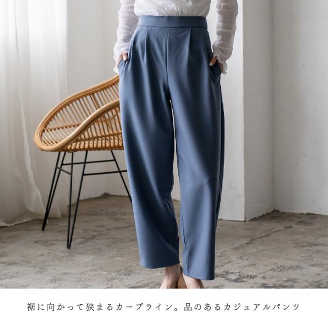 カーブパンツ タックパンツ レディース フレアパンツ 大人 シンプル 無地 セミワイド ワイドパンツ ロングパンツ ボトムス 定番 シンプル ウエストバックゴム ゆったり 楽ちん カジュアル リラックスシルエット 体型カバー blc-hr0615新生活