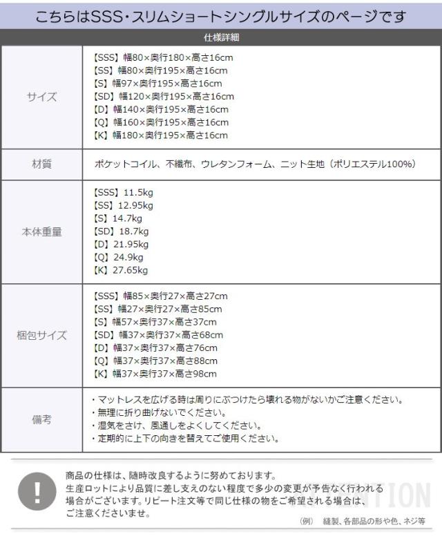 ポケットコイルマットレス スリムショートシングル マットレス 寝具 セミシングルショート ポケットコイル ポケットコイルマットレス 高品質 コンパクト コンパクト梱包 高密度コイル(代引不可)【送料無料】