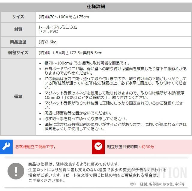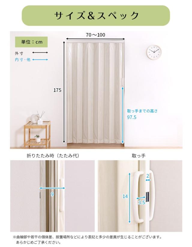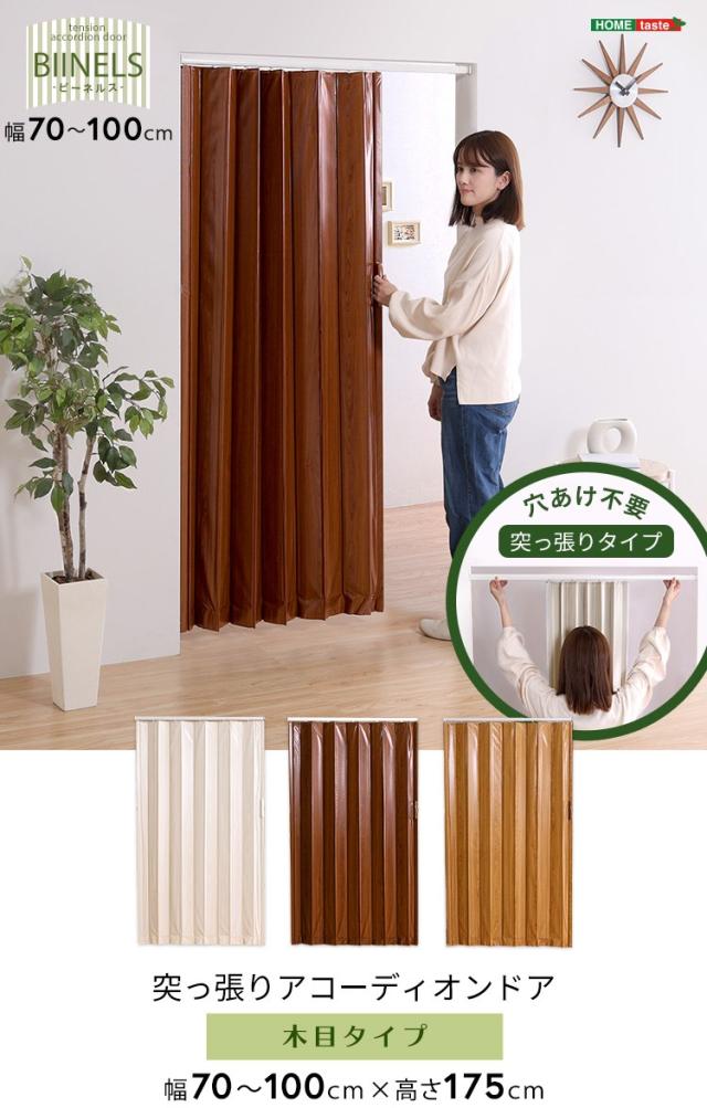 つっぱり木目調アコーディオンドア 100×175cm アコーディオンドア アコーディオン つっぱり おしゃれ パネルドア 間仕切り 幅70~100cm 高さ175cm 省エネ おしゃれ つっぱり式 木目調タイプ(代引不可)【送料無料】