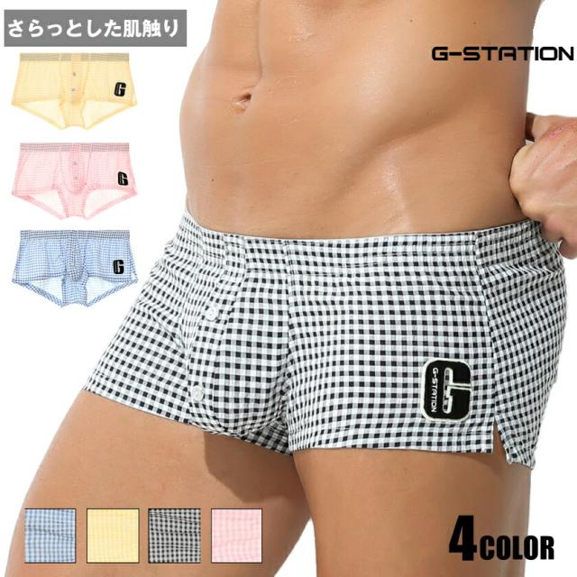 G-Station/ジーステーション くしゅくしゅチェック ワンポイント トランクス メンズ 男性下着 ローライズ 透け スリット ホワイトデー