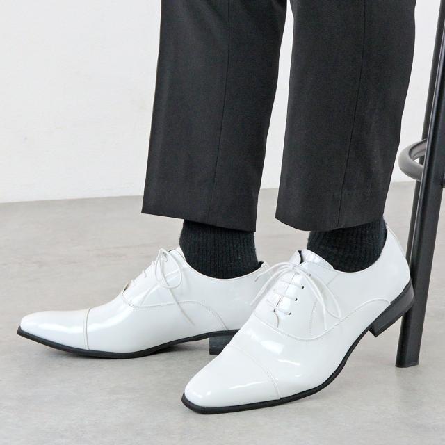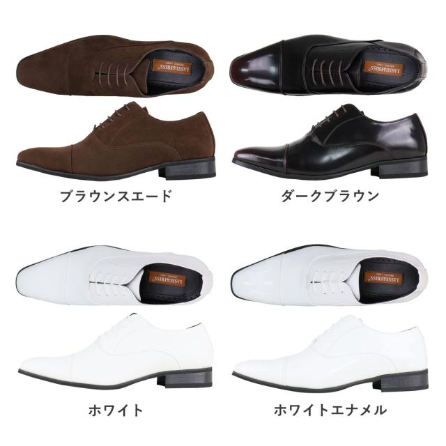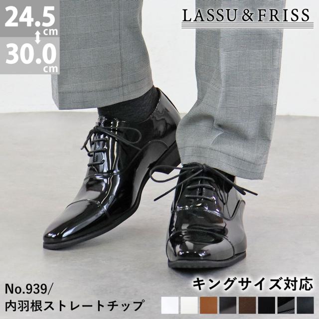 ビジネスシューズ メンズ ロングノーズ 内羽根 ストレートチップ レースアップ 合皮 大きいサイズ キングサイズ 白 24.5cm-29cm 30cm No.939 LASSU&FRISS
