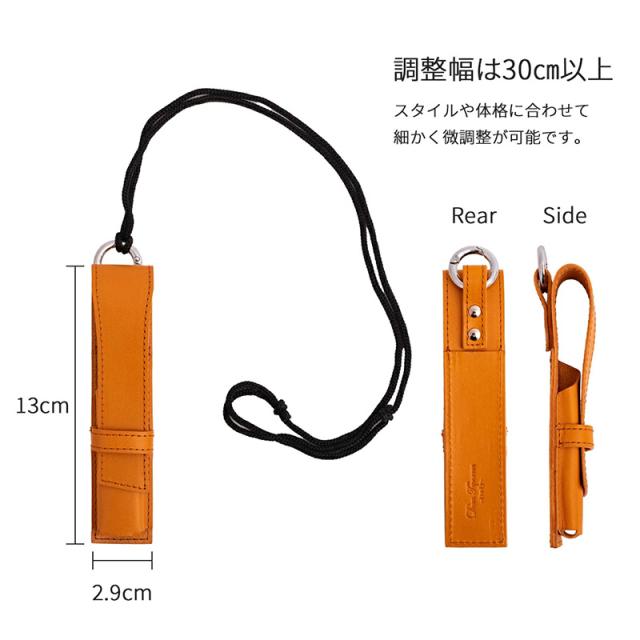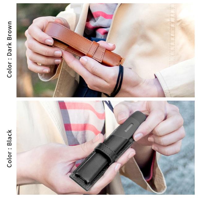 【シンプルに持ち運ぶ】DR.VAPE Model2 に対応した本革製スリーブです。丈夫でしなやかなレザーが本体をしっかり守ります。長さ調節可能な首掛け用のストラップと、丸形カラビナが付属。ストラップを外して、ベルトループやバッグに取り付けても◎ 使用時はもちろん、充電も装着したまま。