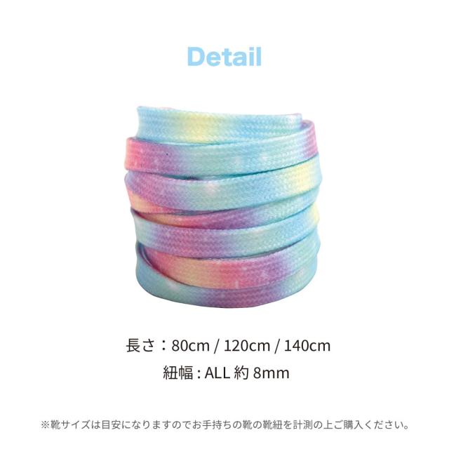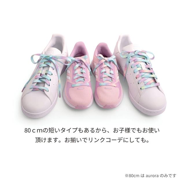 80cm (目安5〜6穴) / 120cm (目安6〜8穴) / 140cm (目安7〜9穴) ※スニーカーはメーカーによりサイズが異るため、お手元の靴紐の長さを測ったうえでお選びください。