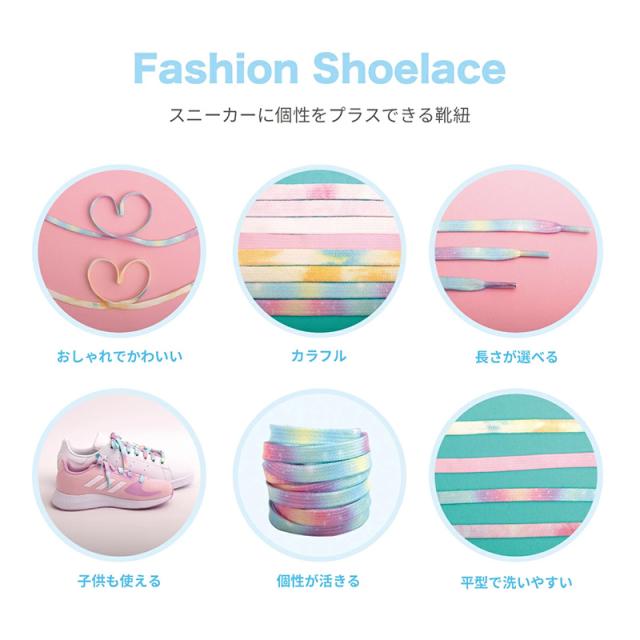 【2つで50%OFF】HIGH FIVE 靴紐 カラフル 平紐 80cm 120cm 140cm シューレース くつひも スニーカー ローカット ハイカット 2本セット 1足分 子供 靴ひも