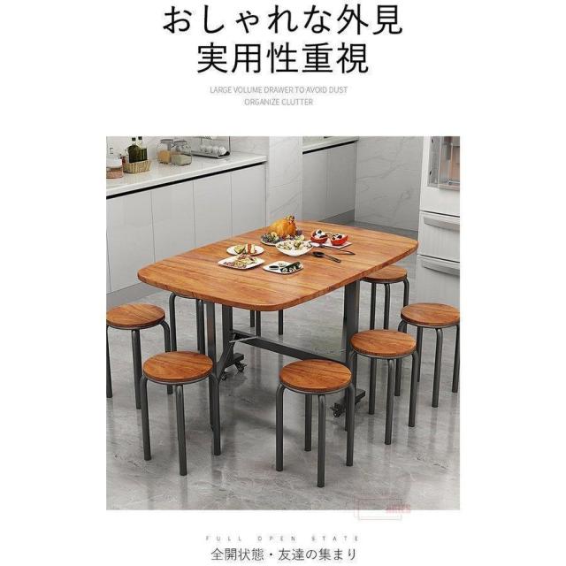 木製テーブル ダイニングテーブル 折り畳み能 天板折りたたみテーブル 食卓 テーブル 角型テーブル ナチュラル キャスター付き Dカラー