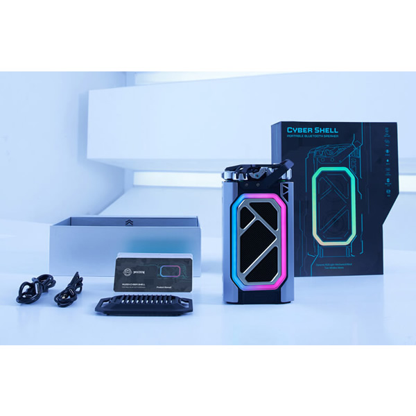 2つのスピーカーを搭載した、10W×48mm径のフルレンジスピーカーが迫力の低音を実現。 大音量・高音質の音波が部屋の隅々までシームレスに流れ、臨場感あふれるサウンド体験を実現します。 ■品名:Cyber Shell Bluetooth スピーカー ■型番:MW-H1I ■サイズ:92 × 55 × 189.5 mm ■重量:約1.05kg ■Bluetooth バージョン:5.0 ■Bluetooth 伝送範囲:≦15m ■スピーカー:10W ×2 ■バッテリー:7.2V/3100mAh ■充電電圧:DC 5V-15V 3A, 急速充電対応 ■充電タイプ:Type-C ■防水等級:IPX5 ■内容品 スピーカー本体×1 取扱説明書×1 Type-C充電ケーブル x 1 AUXオーディオケーブル x 1 ※記載は商品仕様の一部です。仕様説明不足等の理由での返品はできません。特に適合等は必ずご確認ください。