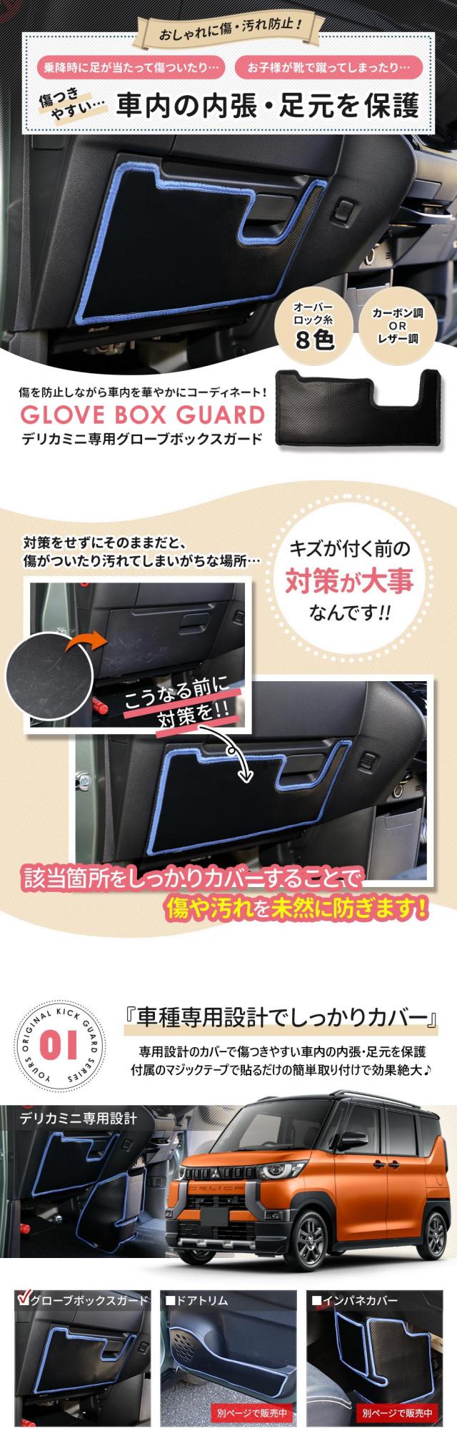 デリカミニ 専用 B34A B35A B37A B38A グローブボックスガード 1PCS 選べる2タイプ キックガード 縫製 日本製 保護 プロテクター 三菱 [5]-2
