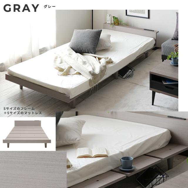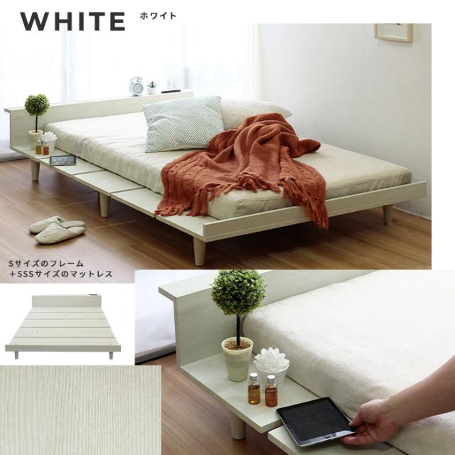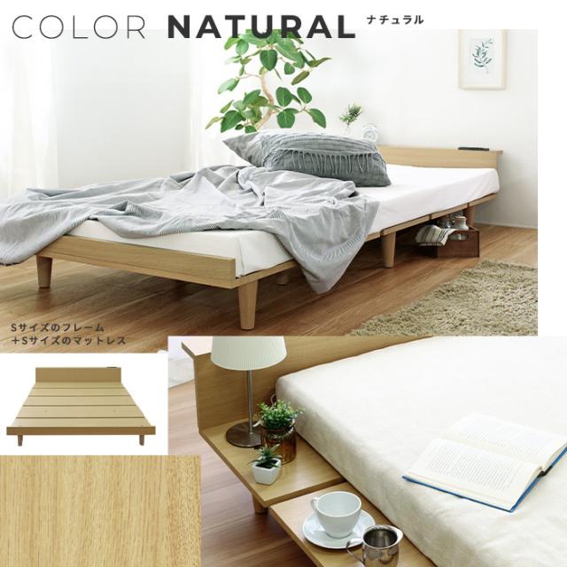 寝具 おしゃれ ローベッドフレーム Durantaデュランタ S コンセント2口付き USBポート付き 棚付き シンプル 北欧風 ナチュラル 通気性 機能的 一人暮らし 寝室