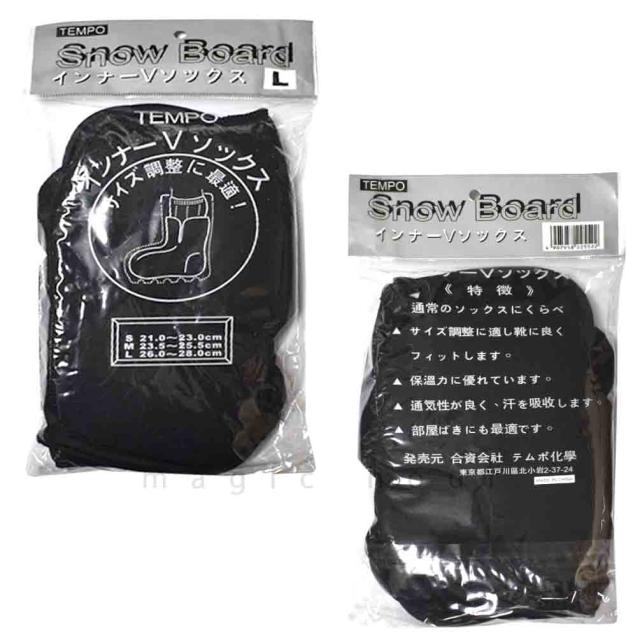 靴 サイズ調整 スキー靴 長靴 保温 防寒 擦れ防止 通気性 保護ソックス 冷え防止 ソックス TEMPO テムポ インナー V ソックス 作業用 スノボー 黒 21 -28cm
