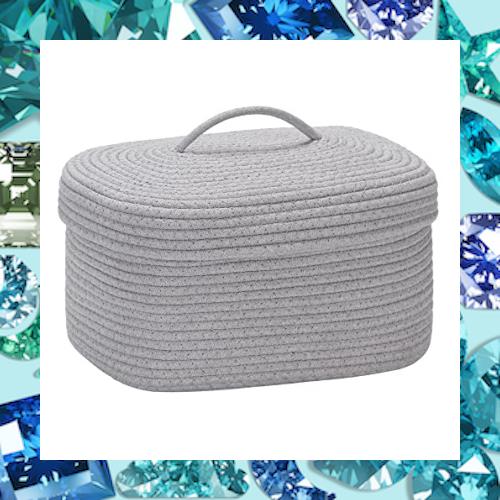 【デザイン】蓋をぽんと乗せるだけだし中身も見えないのでいい感じです。お菓子のパッケージの雑然としたカラフルさがこのバスケットに入れることにより見た目がすっきりとしました。折りたたみ可能なので使わない時はコンパクトに収納できます。