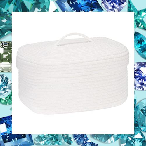【デザイン】蓋をぽんと乗せるだけだし中身も見えないのでいい感じです。お菓子のパッケージの雑然としたカラフルさがこのバスケットに入れることにより見た目がすっきりとしました。折りたたみ可能なので使わない時はコンパクトに収納できます。