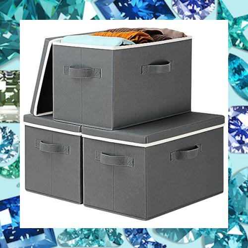 【大容量収納ボックス】3個セット、サイズ(各) :幅38cm×奥行25cm×高さ25cm。収納ボックス 蓋付きの収納容量は24Lで、多数のアイテムを収納できます。無地の生地は、家を整理しながら、家の装飾やスタイルにマッチするクラシックな美学を提供します。