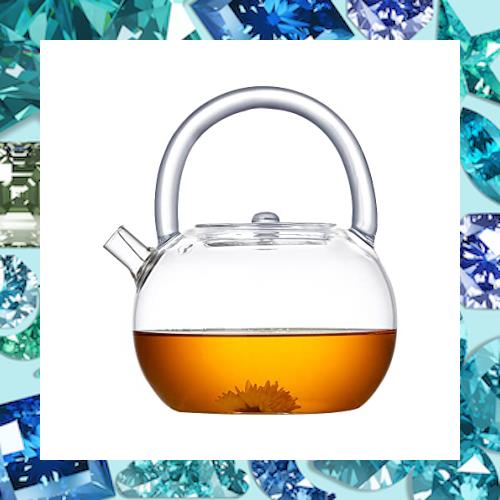 丸い形のティーポット、茶葉が対流を起こしやすく、ジャンピングしやすいです 材質:ホウケイ酸ガラス
