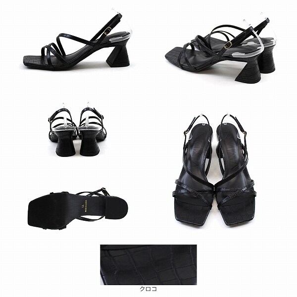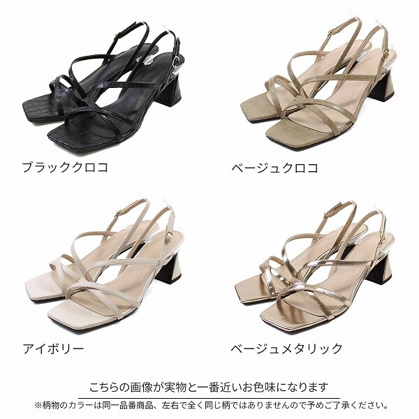 スクエアトゥくびれヒールアシメ華奢ストラップサンダル