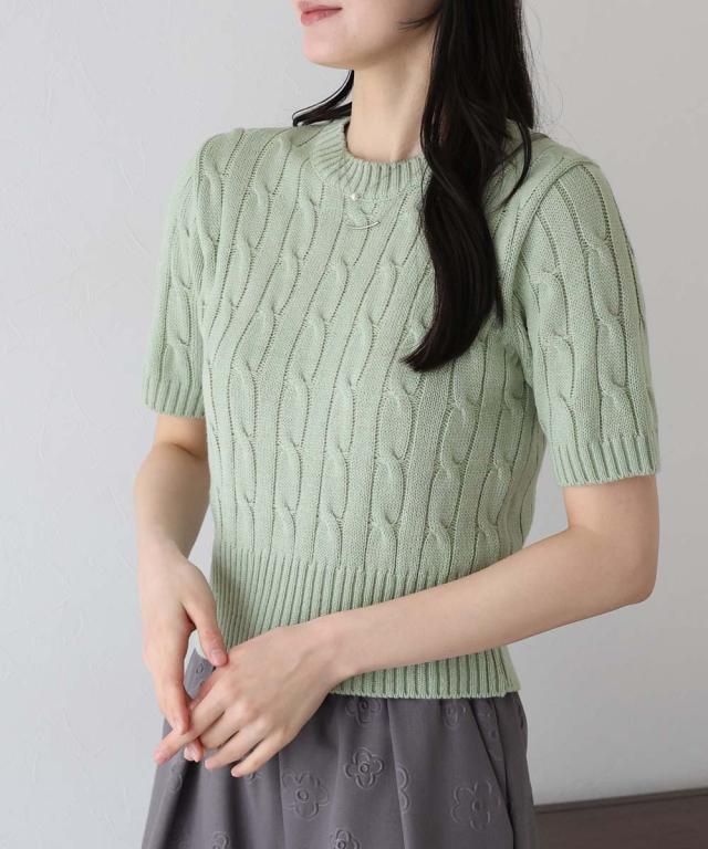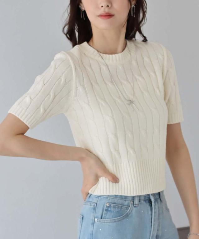 半袖ケーブルニット