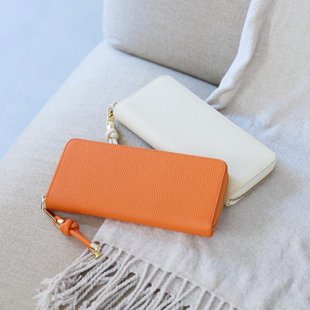 上質なレザーの風合いが際立つミニマルなデザインに、ノットの引き手とキラリときらめくゴールドカラーのリングがアクセント。
