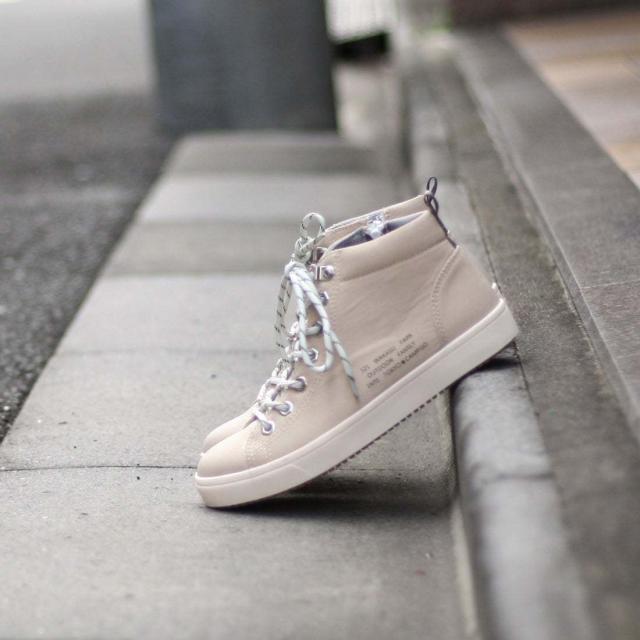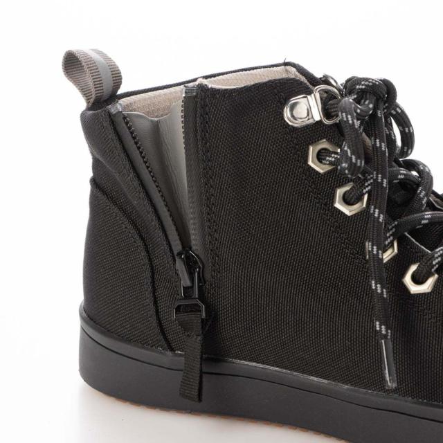 ベーシックなローテクタイプのデザインに六角ハトメやDカン、止水ジップ、反射テープなど細部のパーツにアウトドアのエッセンスを取り入れたハイカットスニーカー。履き口には、厚めのパッドを入れクッション性があるカップインソールを採用している為、長時間の歩行でも疲れづらい設計となっております。